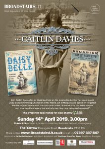 I’ll be talking about the Thanet landscape and the real life figures who inspired Daisy Belle: Swimming Champion of the World as part of BroadstairsLit. Tickets include a prosecco cream tea. The event is held in association with Friends of Oasis, raising money for the Oasis Domestic Abuse Service.