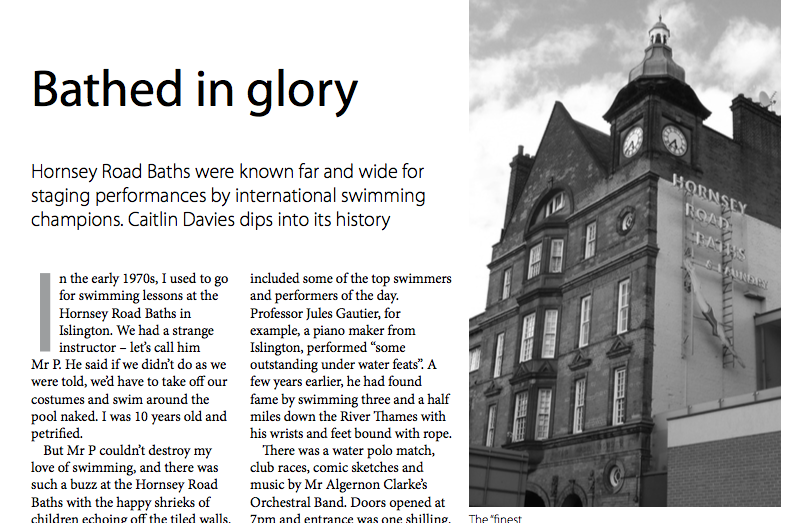 Hornsey Road Baths in Islington, north London, were once known far and wide for staging performances by international swimming champions, which was why I decided to use the baths as a setting in Daisy Belle.